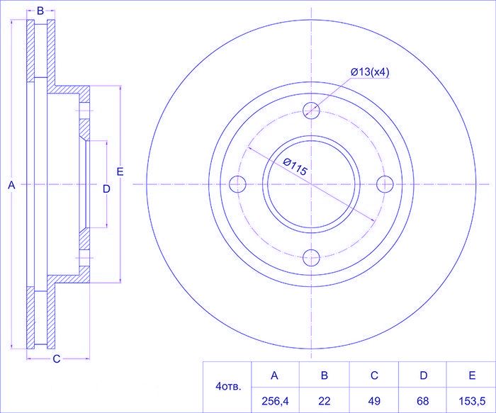 Диск тормозной /передний /TI-GUAR для Nissan AD Y11, Wagon, Sunny B15, Sylpfhy G10, Bluebird U14, Primera P11; 256/22мм; TG-40206-4M402 RN1039 402064M400 402064M401